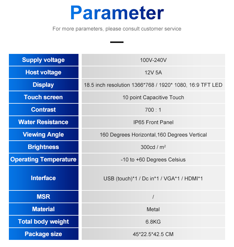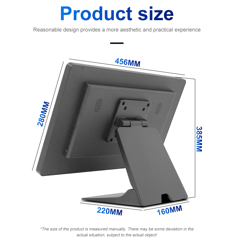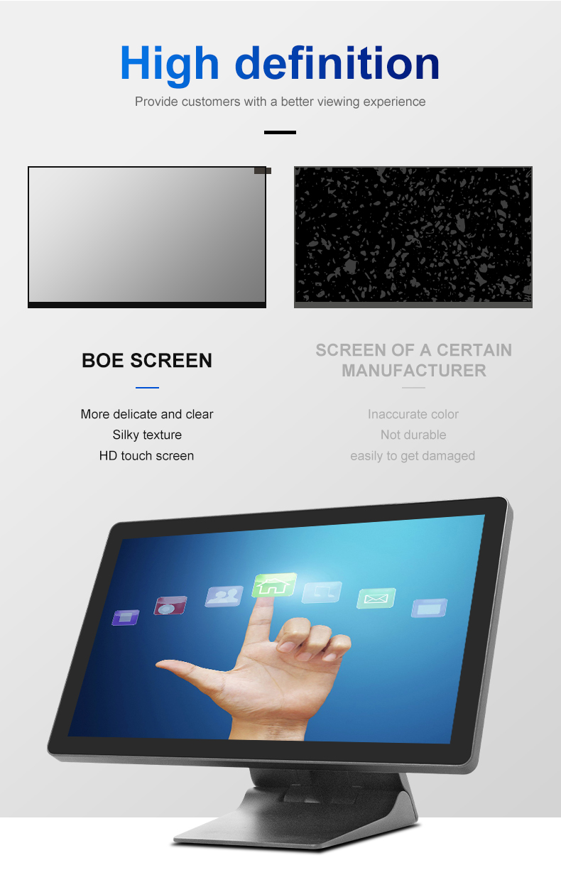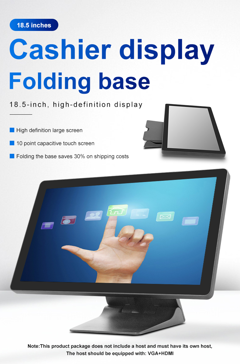 Engineered for performance and reliability, our 18.5-inch industrial grade LCD monitor comes with a projected capacitive touch interface for responsive and smooth navigation. The high-definition 1920x1080 resolution ensures clarity and detail, while the heavy-duty steel case provides excellent protection against harsh industrial conditions. Suitable for factory floors, machinery control, and other demanding environments. 18.5inch upgraded model high quality touch POS system, dual-screen touch, high resolution, sensitive touch without delay.