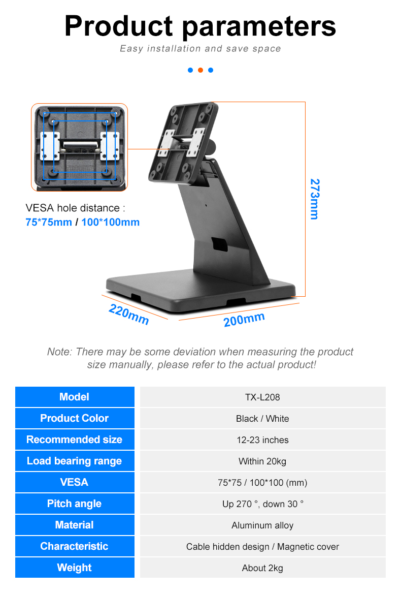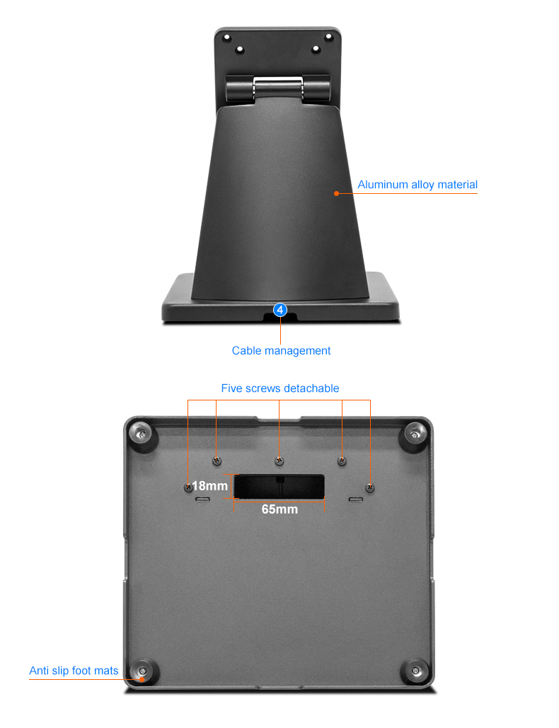 Aluminum Alloy Black/White 9.7/13.3/15/15.6/17/17.3/18.5/21.5 Inch POS System Bracket Touch Monitor Stand Standard VESA Holes Stand