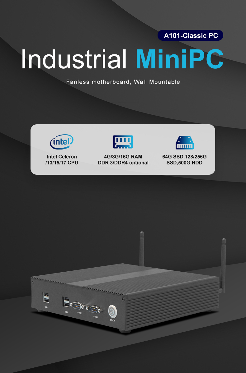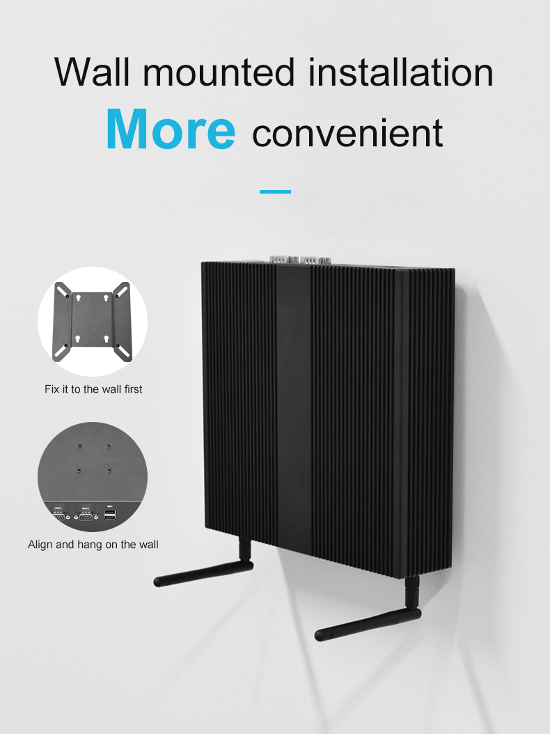 Industrial control aluminum alloy wall mounted small host with built-in WiFi, Bluetooth, 6COM, 8USB, MINIPC