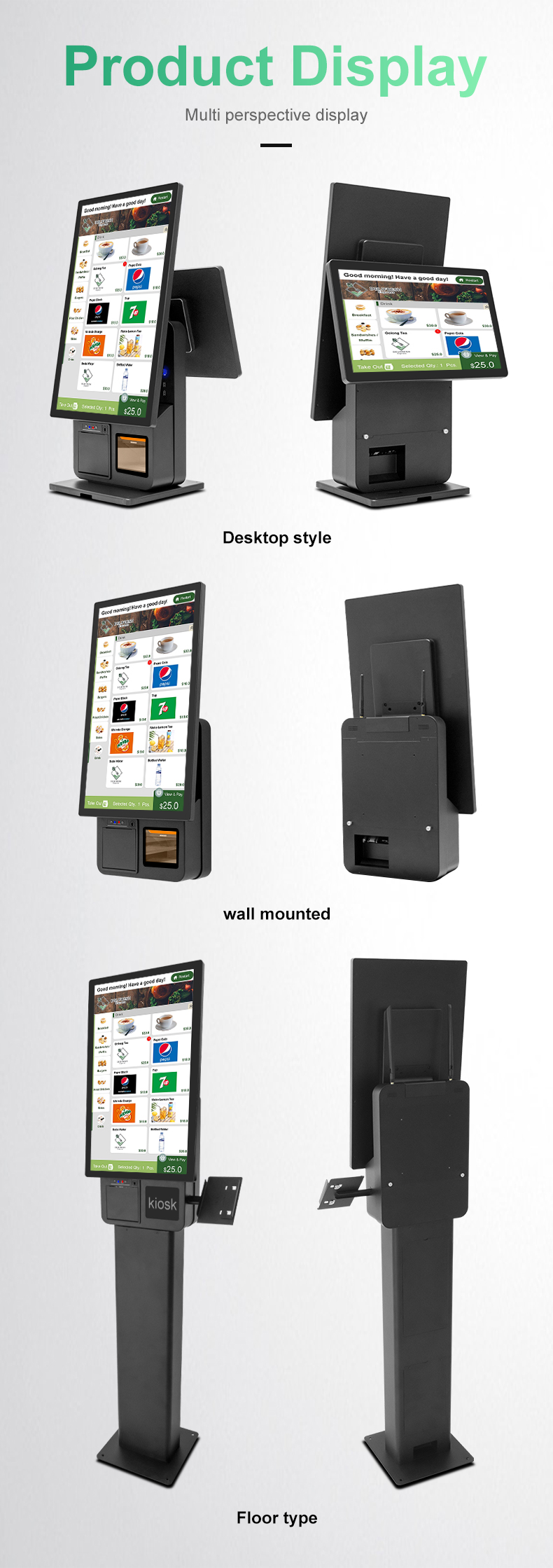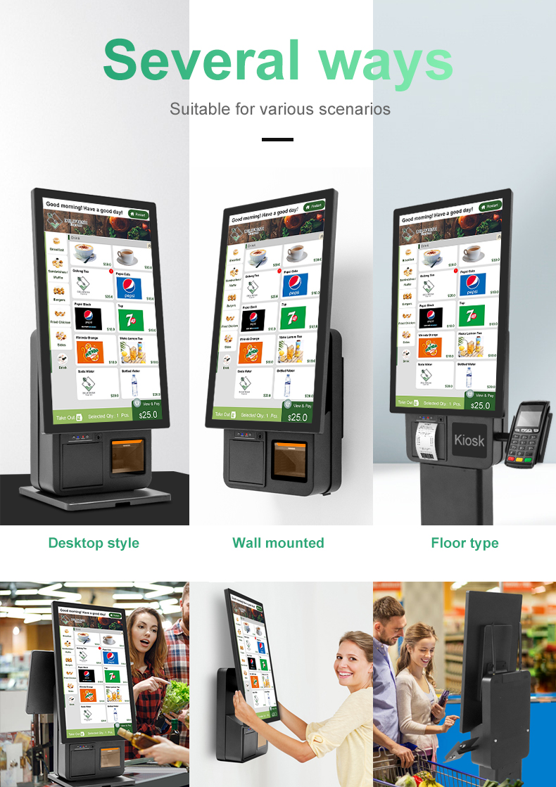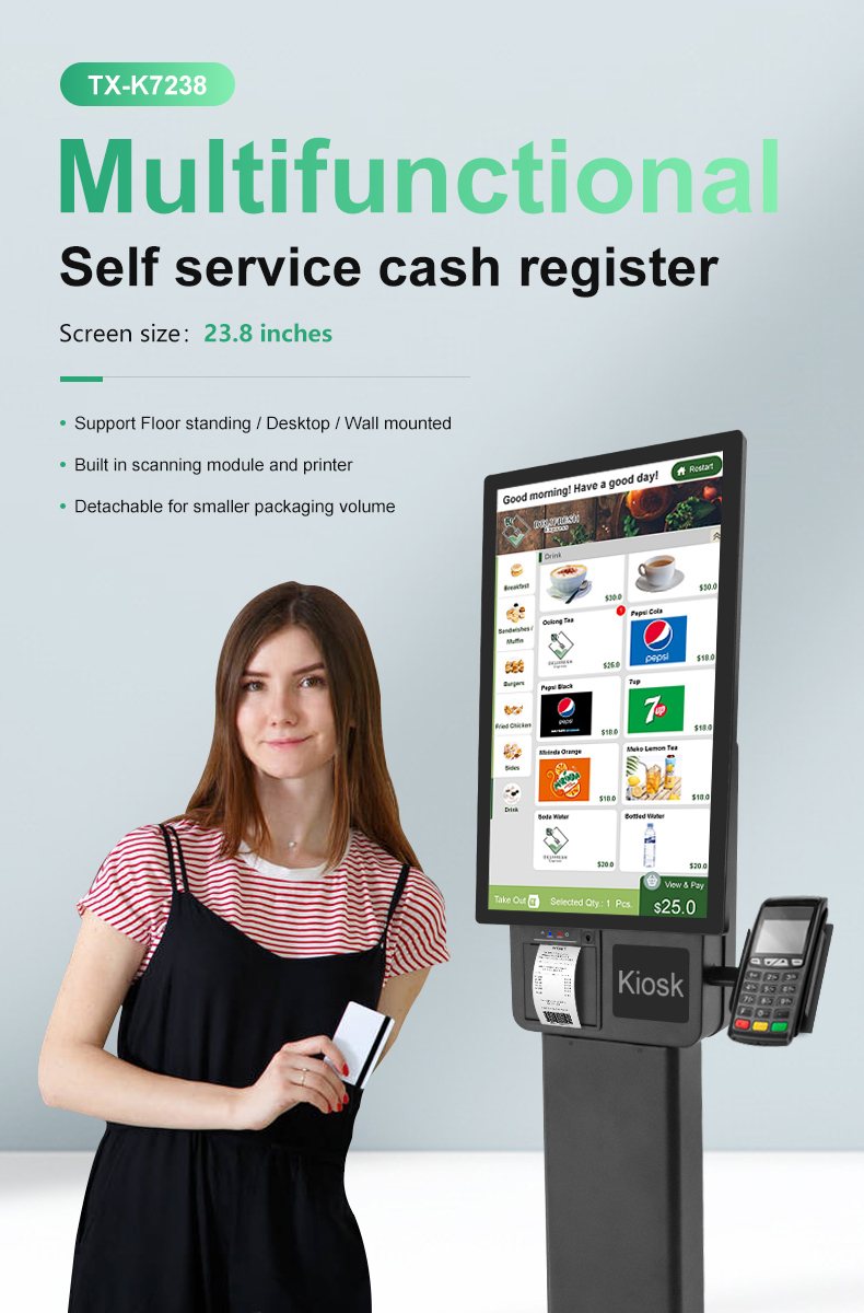 Floor standing 23.8-inch single screen dual screen integrated self-service cash register can be hung on the wall